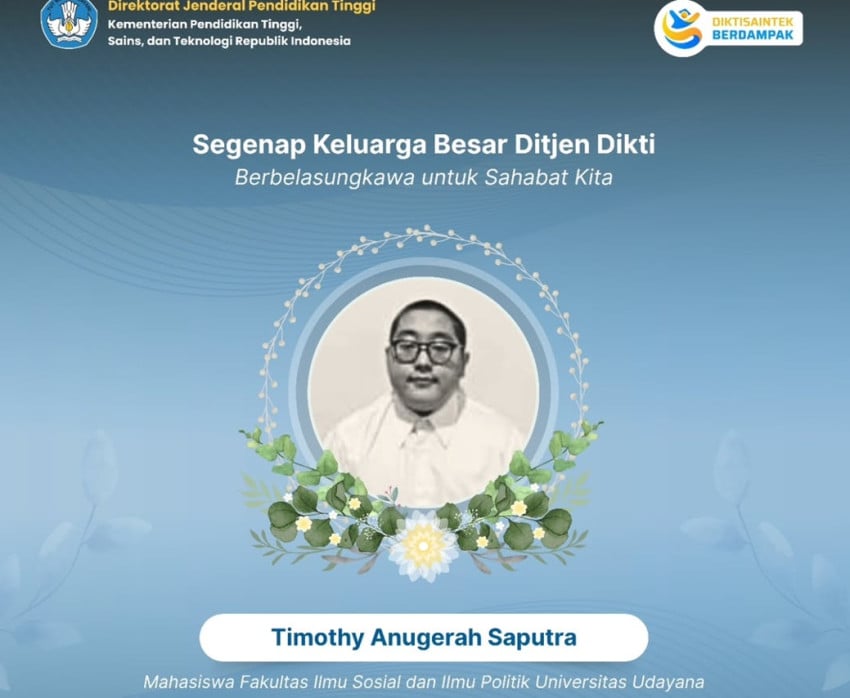 Mahasiswa Unud Timothy Anugerah Wafat, Ini Tanggapan Kemendiktisaintek